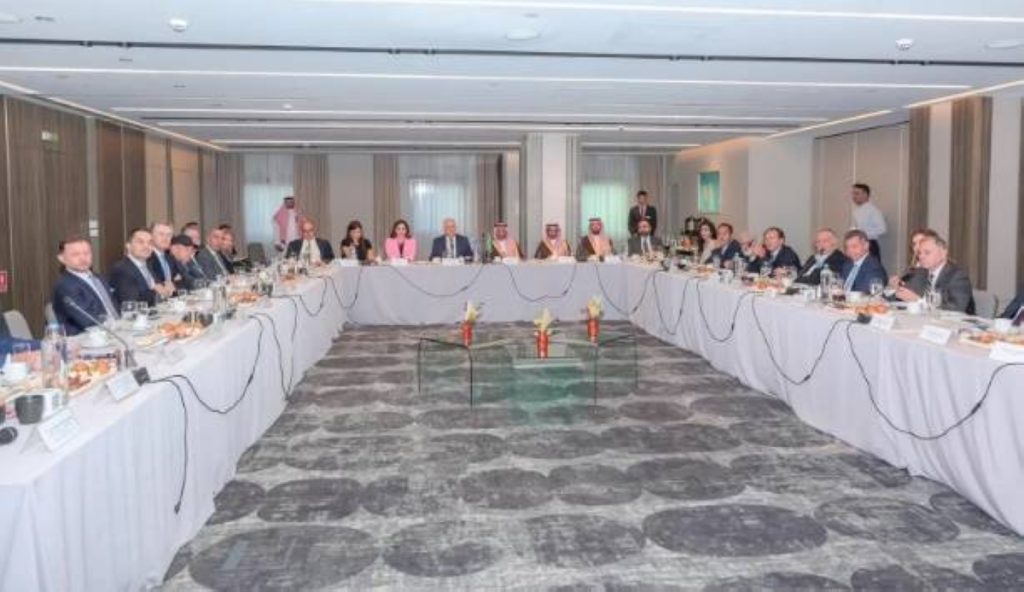 رأس وزير الصناعة والثروة المعدنية بندر الخريّف، مع وزير التنمية اليوناني الدكتور تاكيس ثيودوريكاكوس، اجتماع الطاولة المستديرة مع ممثلي القطاع الخاص اليوناني، الذي انعقد في العاصمة أثينا لمناقشة فرص تعزيز الشراكات الاستثمارية في قطاعي الصناعة والتعدين بين المملكة والجمهورية الهيلينية «اليونان».