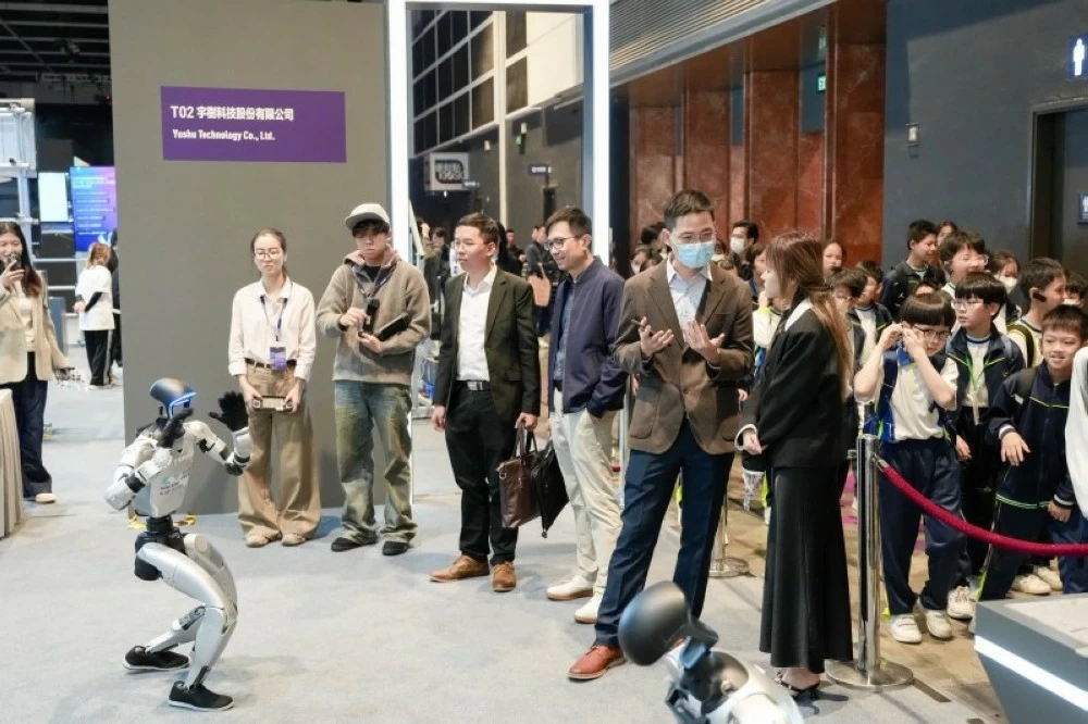 Many companies continue to develop robots equipped to perform various tasks, supported by artificial intelligence. The image shows a group of visitors in “Hong Kong” as they learn about the latest specifications of the robot. (Chinese Economy Daily)