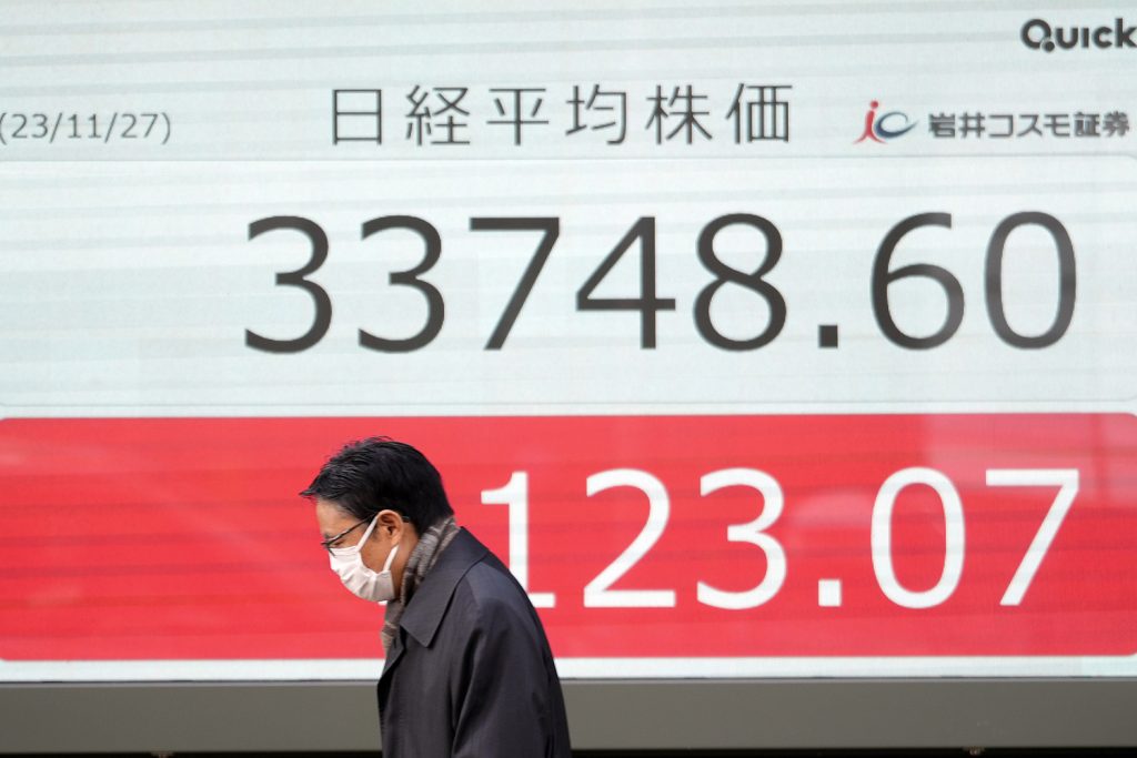 وانخفض المؤشر نيكاي 0.53 في المائة ليغلق عند 33447.67 نقطة. وكان المؤشر قد استهل تداولات اليوم على ارتفاع وصعد 0.6 في المائة في وقت سابق من الجلسة قبل أن يتخلى عن مكاسبه مع إقبال المستثمرين على بيع الأسهم لجني الأرباح.
