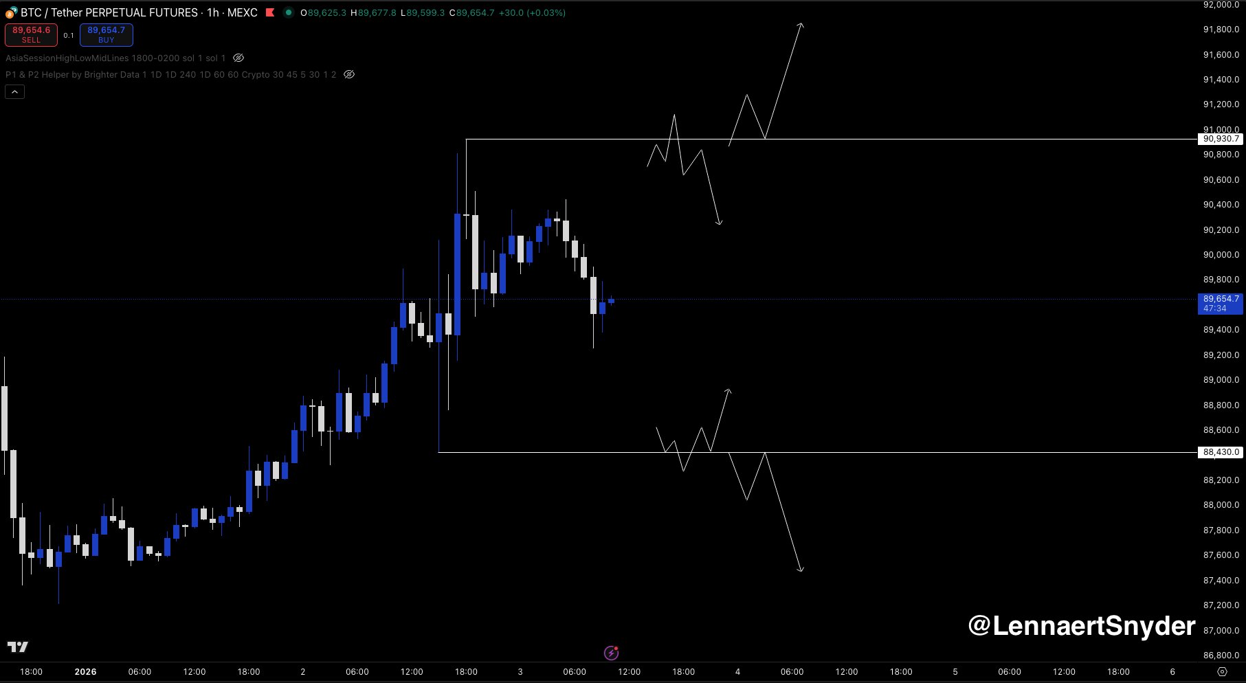 واختتم قائلاً: “الاتجاه واضح لشهر يناير: سنواصل الصعود، طالما بقيت عملة البيتكوين فوق المتوسط المتحرك البسيط لمدة 21 يومًا”، في إشارة إلى المتوسط المتحرك البسيط لمدة 21 يومًا عند 87,850 دولارًا.