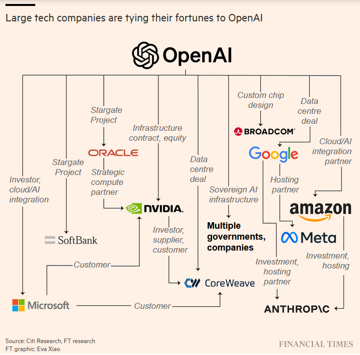 تعمل هذه الخطوة على إنشاء حلقة استثمارية بين مجموعة مختارة من شركات الذكاء الاصطناعي. على سبيل المثال، وقعت شركة OpenAI صفقة بقيمة 300 مليار دولار مع شركة Oracle.