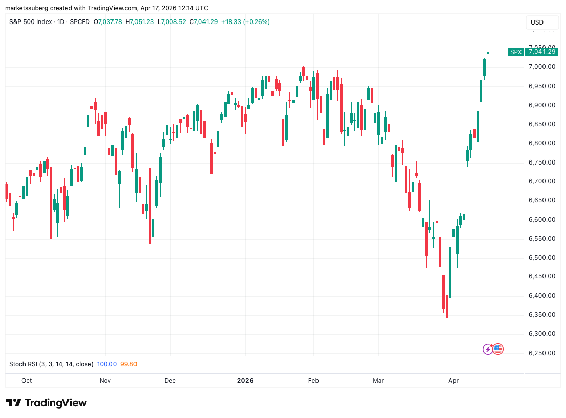 يوم الخميس، وصل مؤشر S&P 500 إلى 7050 نقطة للمرة الأولى في التاريخ، مسجلاً أعلى مستوى إغلاق له على الإطلاق وثاني أعلى مستوى له على الإطلاق خلال الأسبوع.