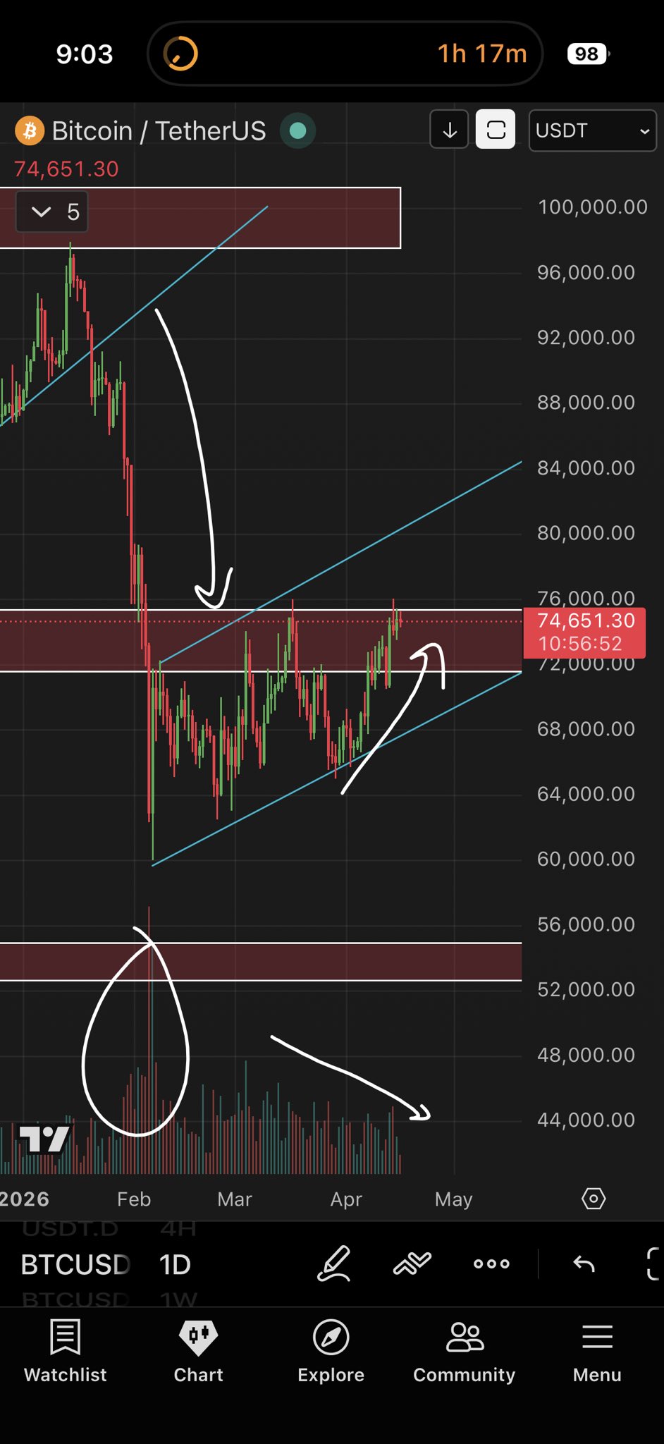“في المرة الأخيرة التي رفضت فيها عملة البيتكوين المقاومة السوداء في منتصف شهر مارس، فقد السعر أيضًا المستوى الأزرق كدعم. وهذا هو السبب في أن الإغلاق اليومي تحت المستوى الأزرق بعد أي انخفاض قادم قد يؤدي إلى انخفاض السعر مرة أخرى إلى النطاق الأسبوعي الأزرق والأزرق.”