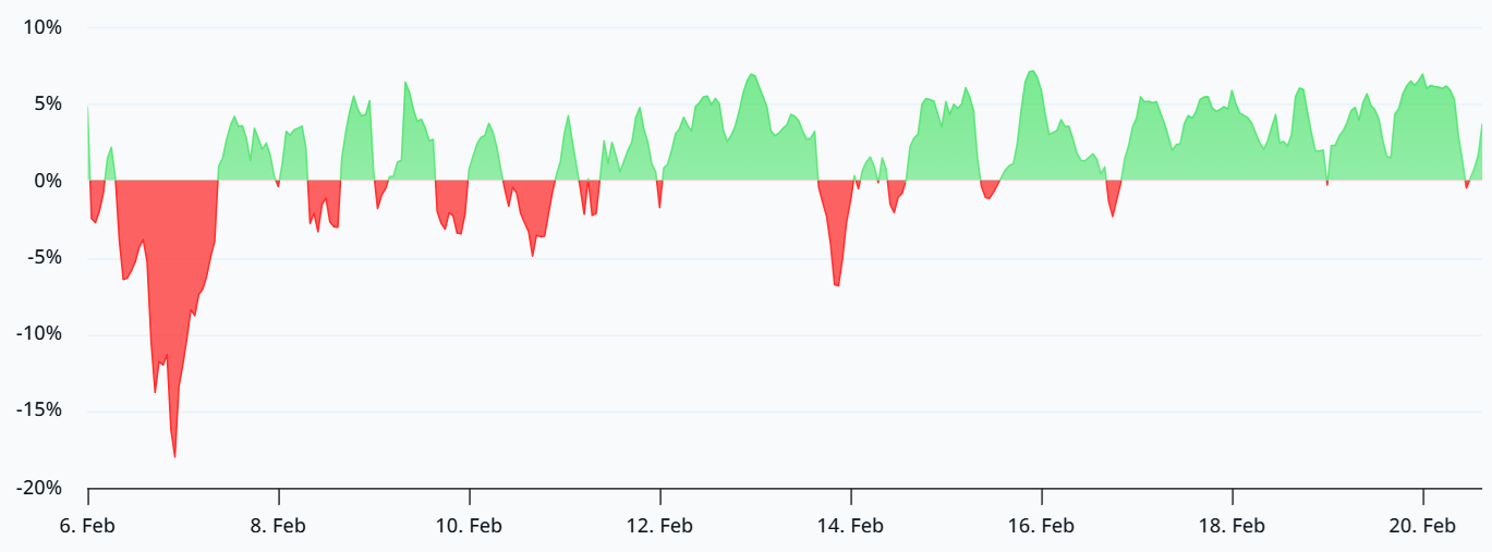 فشل معدل تمويل العقود الآجلة الدائمة لـ BTC في البقاء فوق الحد المحايد البالغ 6٪ خلال الأسبوعين الماضيين. والأمر الأكثر دلالة هو الامتداد الأخير لمعدل التمويل السلبي، مما يشير إلى أن الدببة ملتزمون بمواقفهم حتى مع إعادة اختبار البيتكوين لمستوى الدعم البالغ 66000 دولار. لا تزال استعادة الإدانة تشكل عقبة أمام المضاربين على الارتفاع، الذين شهدوا عمليات تصفية بقيمة 1.6 مليار دولار خلال الانهيار الذي استمر ثلاثة أيام والذي بدأ في 6 فبراير.