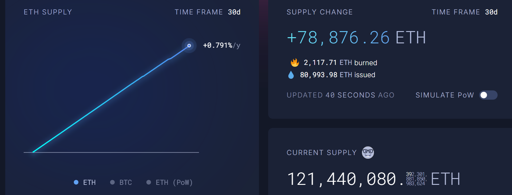 يمكن تفسير جزء من خيبة أمل المستثمرين بفشل استراتيجية إيثر في التحول إلى انكماشية، وهو تأثير ثانوي لانخفاض نشاط شبكة إيثريوم. تعتمد آلية الحرق المضمنة على الطلب على معالجة بيانات الطبقة الأساسية؛ وبدون ذلك، هناك زيادة صافية في المعروض من الإثيريوم. وصل النمو السنوي لإجمالي إصدار ETH إلى 0.8٪ على مدار الثلاثين يومًا الماضية، وهي قفزة كبيرة عن العام السابق عندما كان التضخم المعادل قريبًا من 0٪.