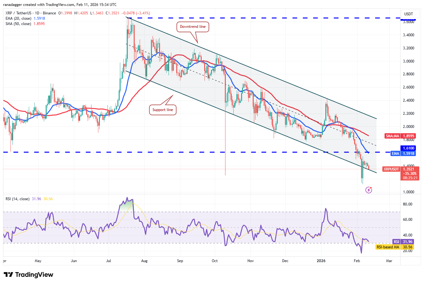 وهذا يزيد من احتمالية الانخفاض تحت خط الدعم. إذا حدث ذلك، فقد يعيد زوج XRP/USDT اختبار مستوى 1.11 دولار. إذا انهار مستوى 1.11 دولار، فقد ينخفض الزوج إلى 1 دولار ثم إلى 0.75 دولار.
