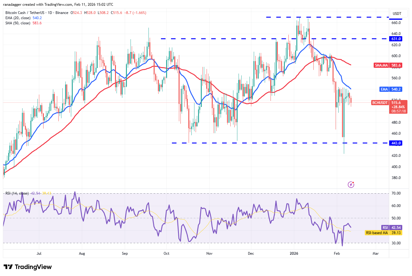 لا تزال Bitcoin Cash (BCH) تواجه مقاومة شديدة عند المتوسط المتحرك الأسي على مدى ٢٠ يومًا (٥٤٠ دولارًا)، ولكن الجانب الإيجابي البسيط هو أن المضاربين على الارتفاع لم يتنازلوا كثيرًا عن المضاربين على الانخفاض.