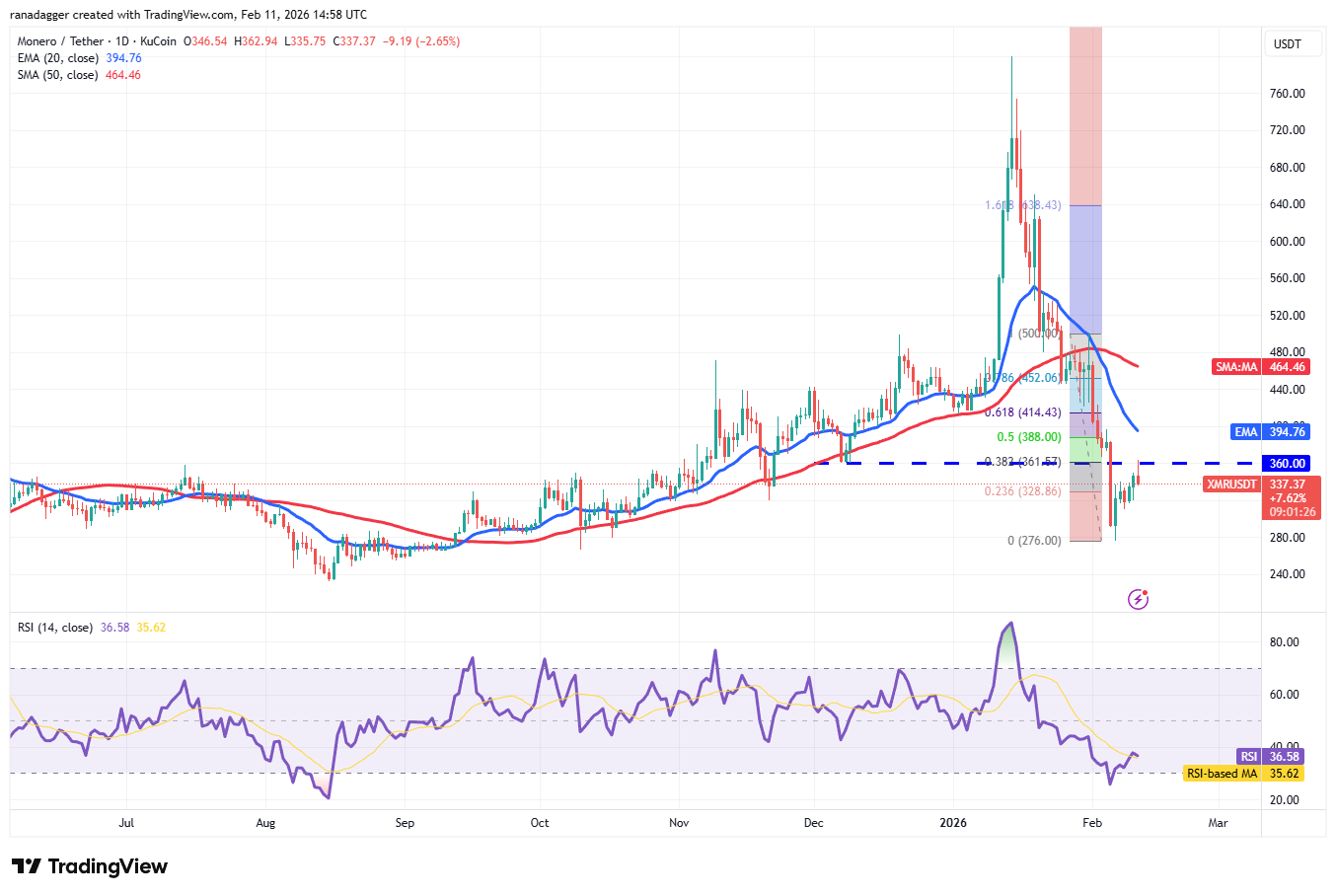 وصلت عملة مونيرو (XMR) إلى مستوى تصحيح فيبوناتشي 38.2% عند 361 دولارًا، حيث يشكل المضاربون على الانخفاض تحديًا قويًا.
