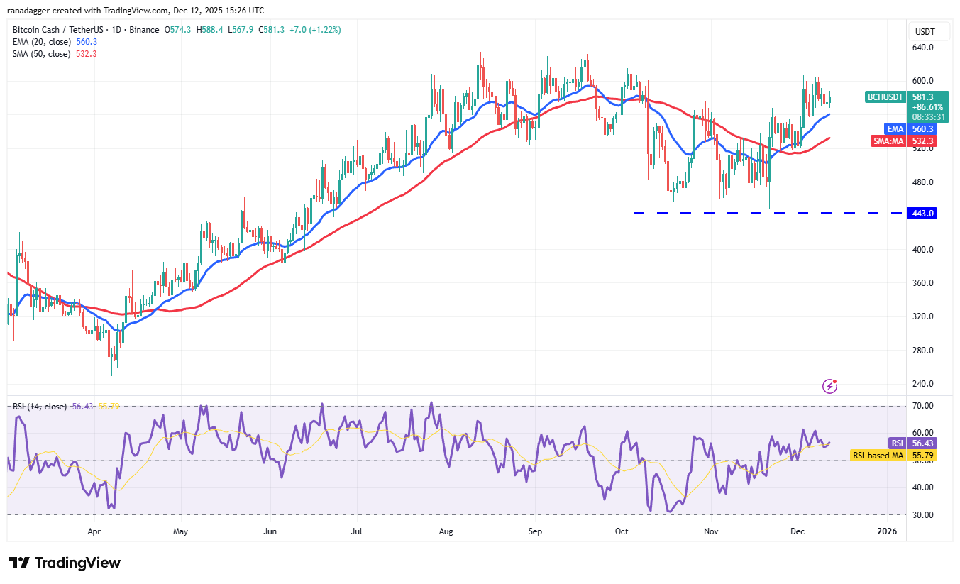 ارتفعت عملة البيتكوين كاش (BCH) من المتوسط المتحرك الأسي البالغ 20 يومًا (560 دولارًا) يوم الخميس، مما يشير إلى معنويات إيجابية.