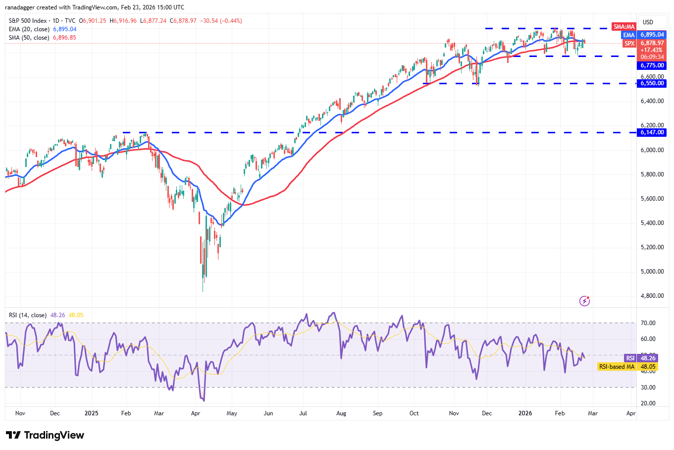 ويتداول مؤشر ستاندرد آند بورز 500 (SPX) بين 6775 و7002 لعدة أيام، مما يشير إلى التوازن بين العرض والطلب.