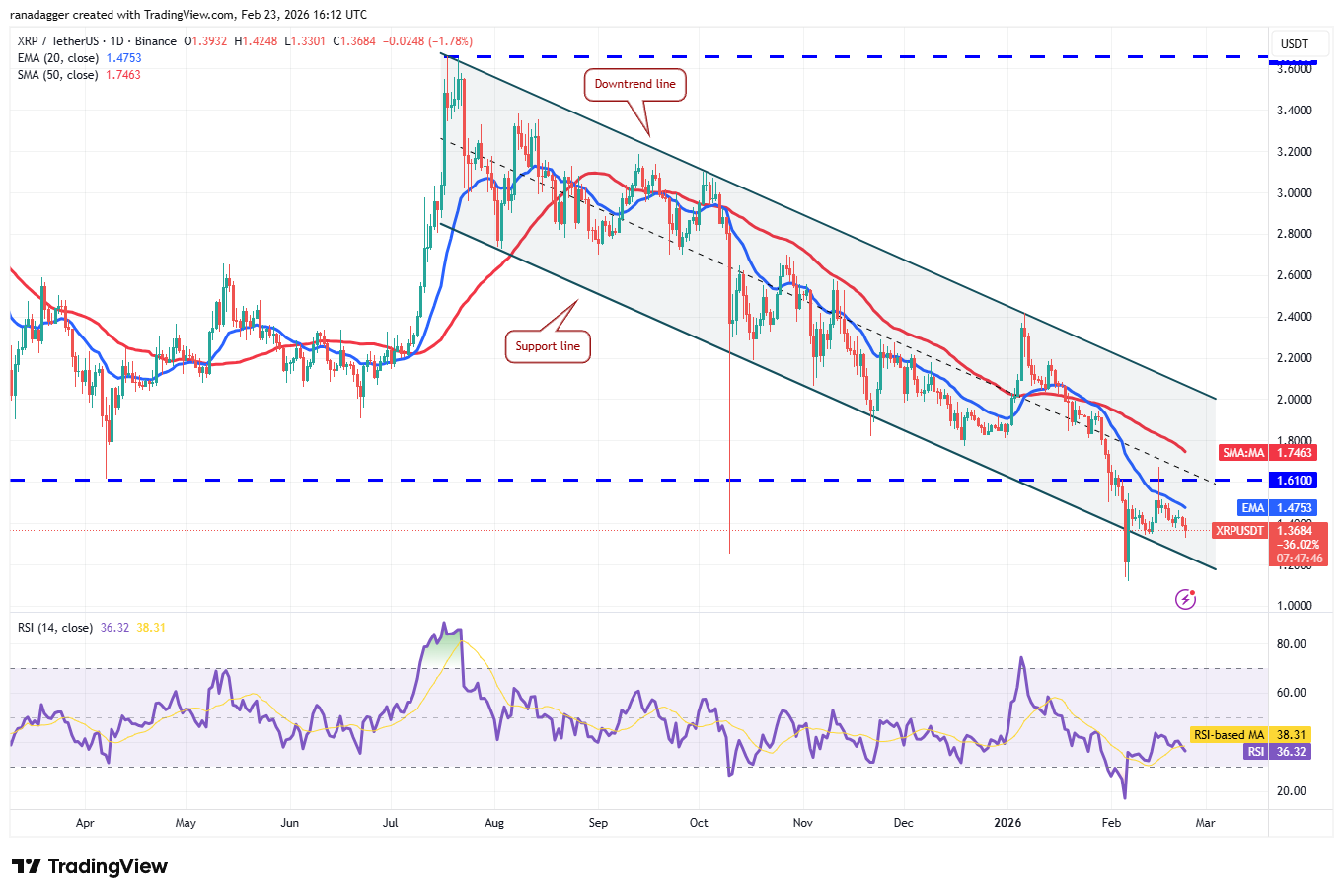 يشير المتوسط المتحرك الأسي على مدى 20 يومًا ومؤشر القوة النسبية في المنطقة السلبية إلى أن الحركة الهبوطية لا تزال تحت السيطرة. إذا اخترق خط الدعم، فقد يعيد زوج XRP/USDT اختبار أدنى مستوى في 6 فبراير عند 1.11 دولار. قد يؤدي الاختراق والإغلاق تحت مستوى 1.11 دولار إلى تمديد الانخفاض إلى الدعم النفسي عند 1 دولار.
