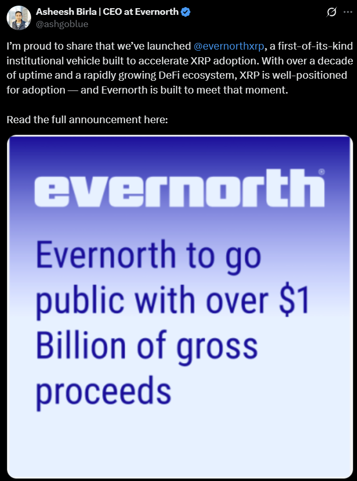 Evernorth المدعومة من الريبل تطرح أسهمها للاكتتاب العام وتبني خزينة XRP