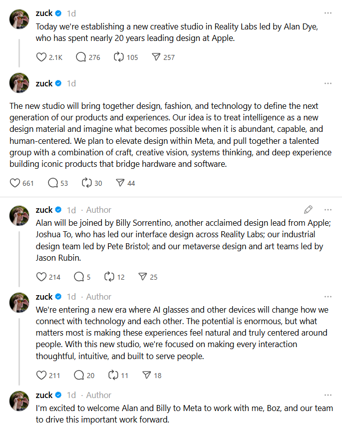 ربما تكون Meta في حالة هدوء على الميتافيرس، لكن الرئيس التنفيذي مارك زوكربيرج قال في منشور على منصة X-like Threads الخاصة به يوم الأربعاء إن شركته تفتتح استوديوًا إبداعيًا جديدًا داخل Reality Labs، يركز على “التصميم والأزياء والتكنولوجيا”.