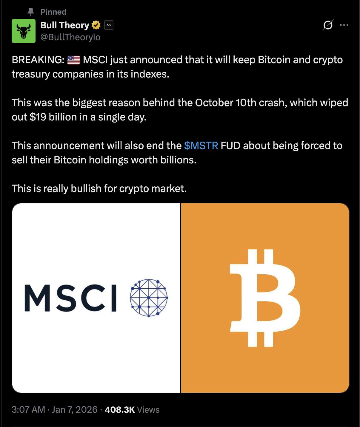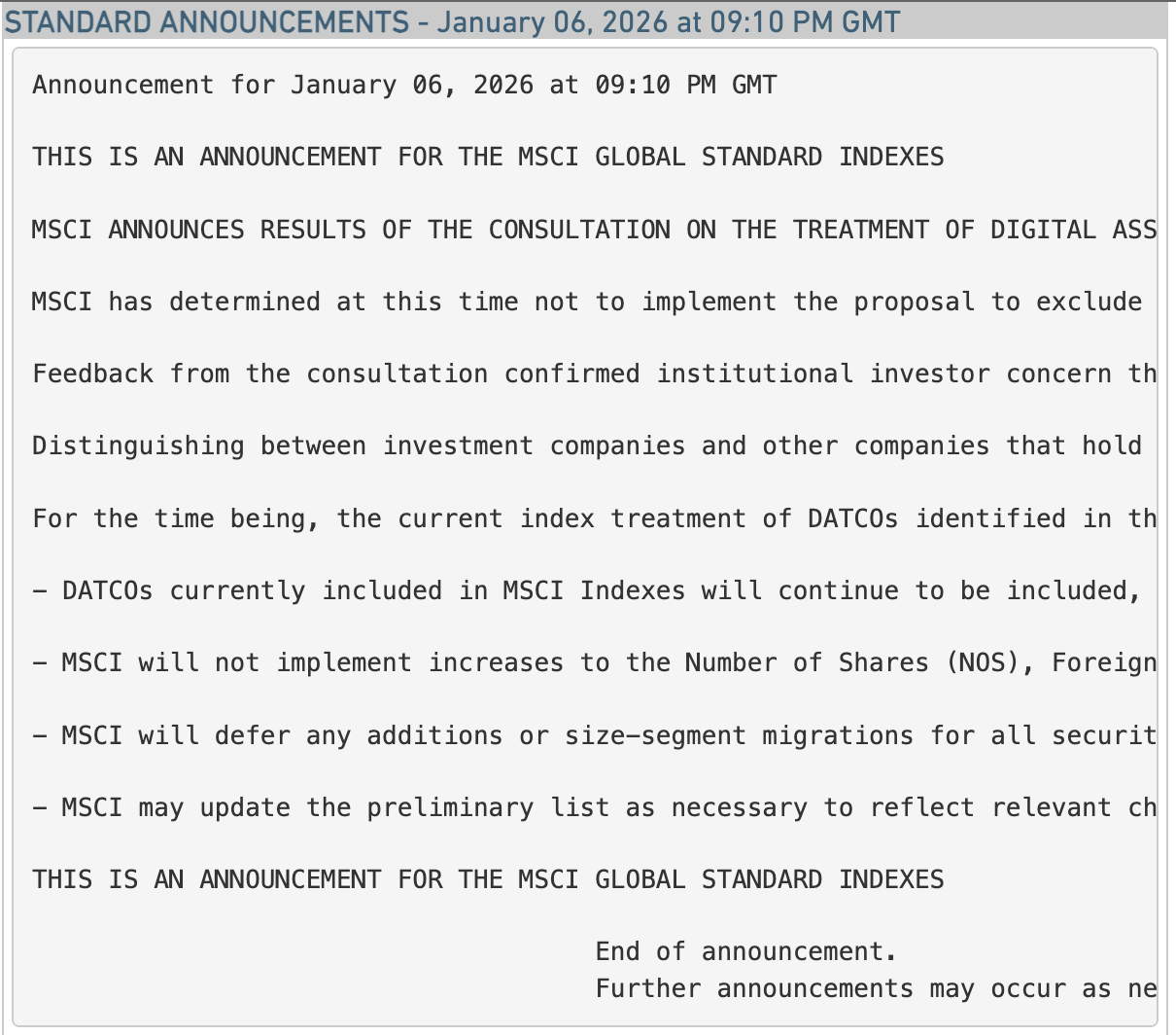 في السابق، عندما أصدرت شركات مثل Strategy أسهمًا جديدة لزيادة رأس المال لشراء البيتكوين، كان مطلوبًا من الصناديق السلبية التي تتبع مؤشرات MSCI شراء جزء من تلك الأسهم، مما أدى إلى خلق طلب ثابت.