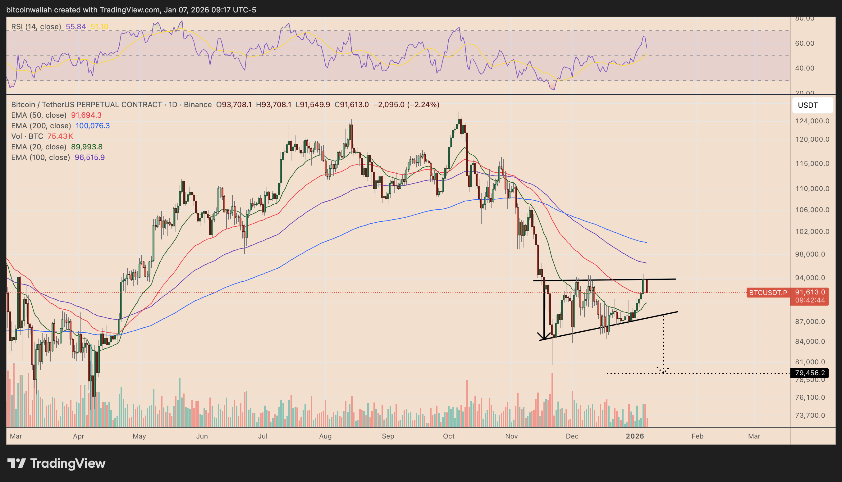 يحذر الفنيون من خسارة سعر BTC لـ 90 ألف دولار مرة أخرى
