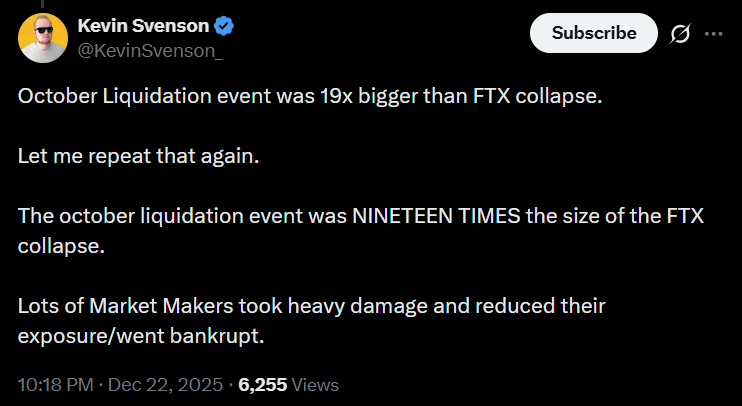 وقد أدت هذه الهيمنة أيضًا إلى تضخيم التقلبات. تم عرض المخاطر خلال حدث تصفية سوق العملات المشفرة في 10 أكتوبر، والذي كان الأكبر في التاريخ، حيث تم محو 19 مليار دولار في يوم واحد.