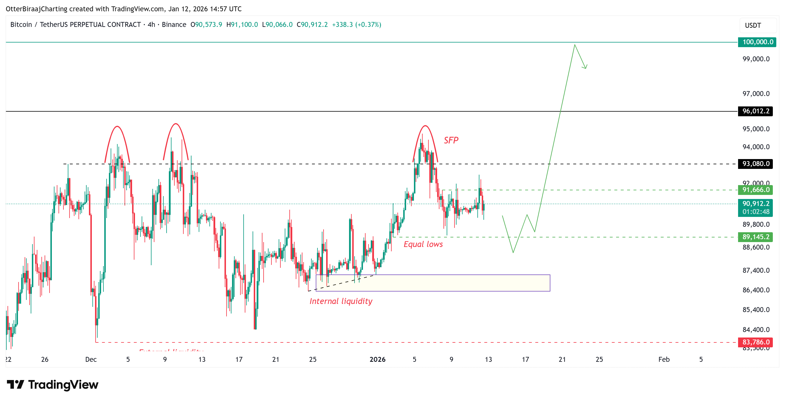 إذا استمر الطلب، فإن قدرة بيتكوين على استيعاب إمدادات الحيتان OG يمكن أن تؤدي إلى الدفع نحو المستوى النفسي البالغ 100000 دولار. قد تتطلب هذه الخطوة أولاً اجتياحًا للسيولة إلى ما دون 89000 دولار، مع قبول السعر في نطاق 89000 دولار إلى 87000 دولار كإشارة رئيسية.