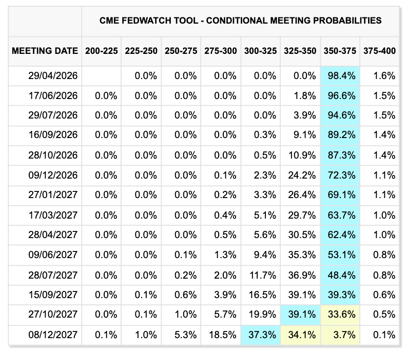ومع ذلك، لم يكن لدى الأسواق أي أمل في قيام بنك الاحتياطي الفيدرالي بخفض أسعار الفائدة – وهو استنتاج تم التوصل إليه بالفعل على خلفية إصدار مؤشر نفقات الاستهلاك الشخصي (PCE) يوم الخميس، وفقًا لبيانات من أداة FedWatch التابعة لمجموعة CME.