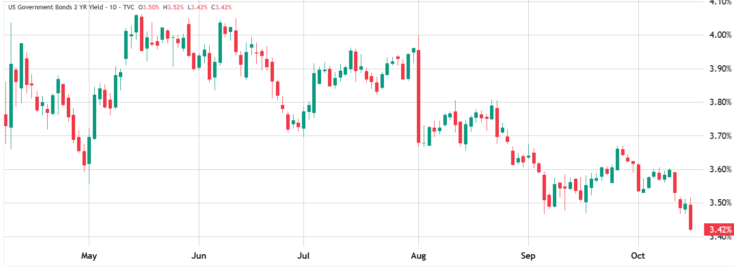 لم تكن بيتكوين هي السوق الوحيدة التي تأثرت بالتحول في معنويات المستثمرين، كما رأينا في أعلى مستوى جديد للذهب على الإطلاق يوم الخميس. كما ارتفع الطلب على السندات الحكومية الأمريكية قصيرة الأجل، حتى مع إشارة اثنين من محافظي بنك الاحتياطي الفيدرالي إلى المزيد من التخفيضات في أسعار الفائدة في أكتوبر – وهي الخطوة التي تقلل عادة من جاذبية الاستثمارات ذات الدخل الثابت.