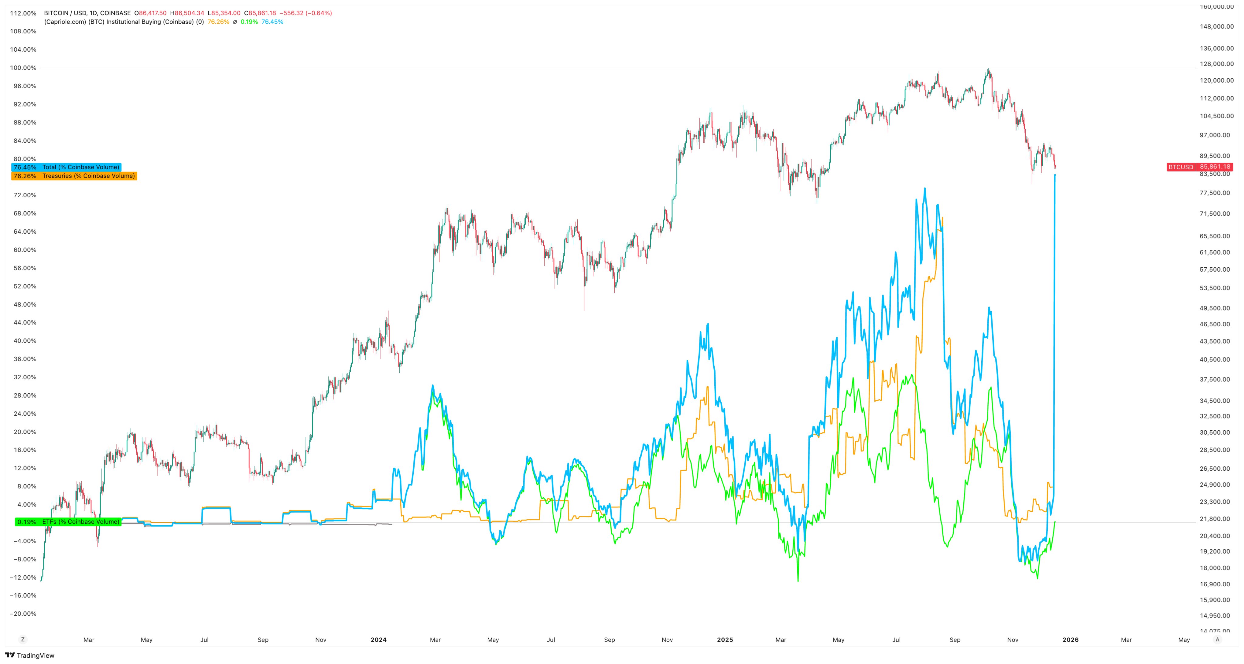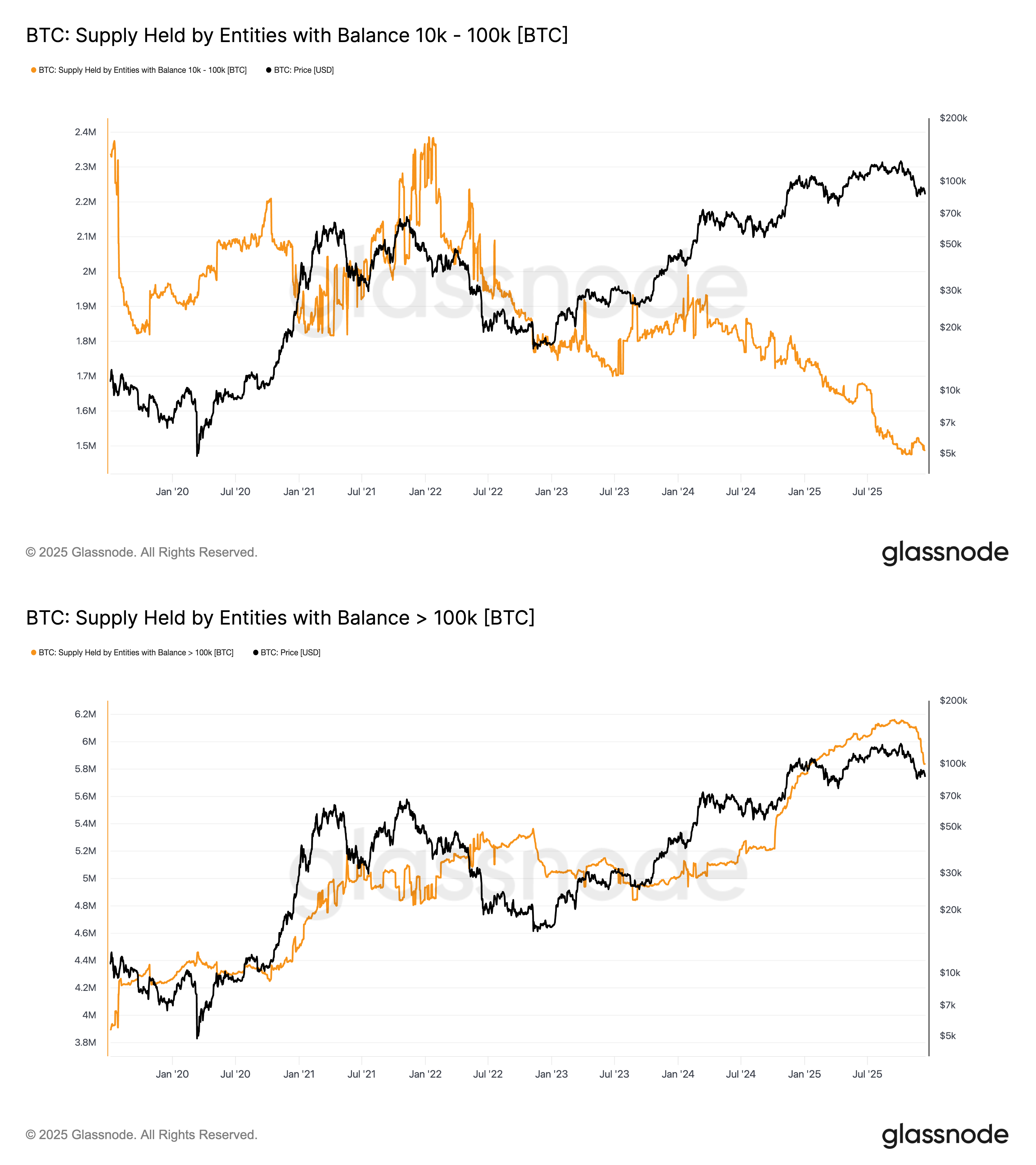 انخفضت عملة البيتكوين (BTC) بنسبة 30٪ من ذروتها البالغة 126200 دولار، ويتم تداولها أعلى بقليل من مستوى الدعم البالغ 85000 دولار مما يزيد المخاوف من تراجع أعمق نحو منطقة 70000 دولار. ومع ذلك، أظهرت بيانات onchain أن المؤسسات والأفراد ذوي الثروات العالية كانوا يجمعون البيتكوين.
