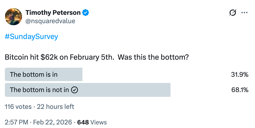 وفي الوقت نفسه، أكد استطلاع أجراه بيترسون يوم الأحد، معنويات سوق العملات المشفرة الهبوطية الحالية.