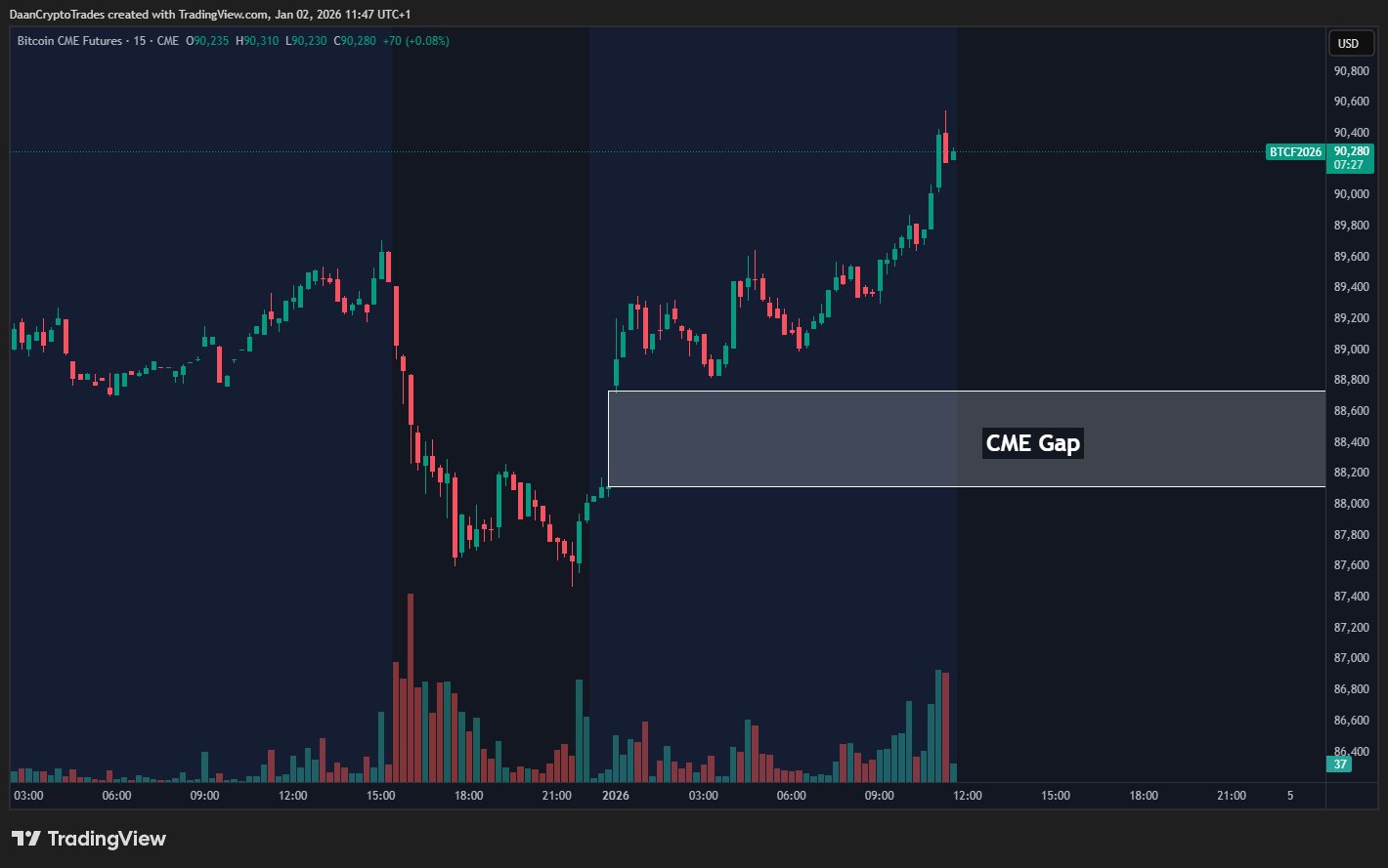 اقتربت عملة البيتكوين (BTC) من 90 ألف دولار في أول افتتاح في وول ستريت لعام 2026 مع التركيز على فجوة جديدة في العقود الآجلة في بورصة شيكاغو التجارية.