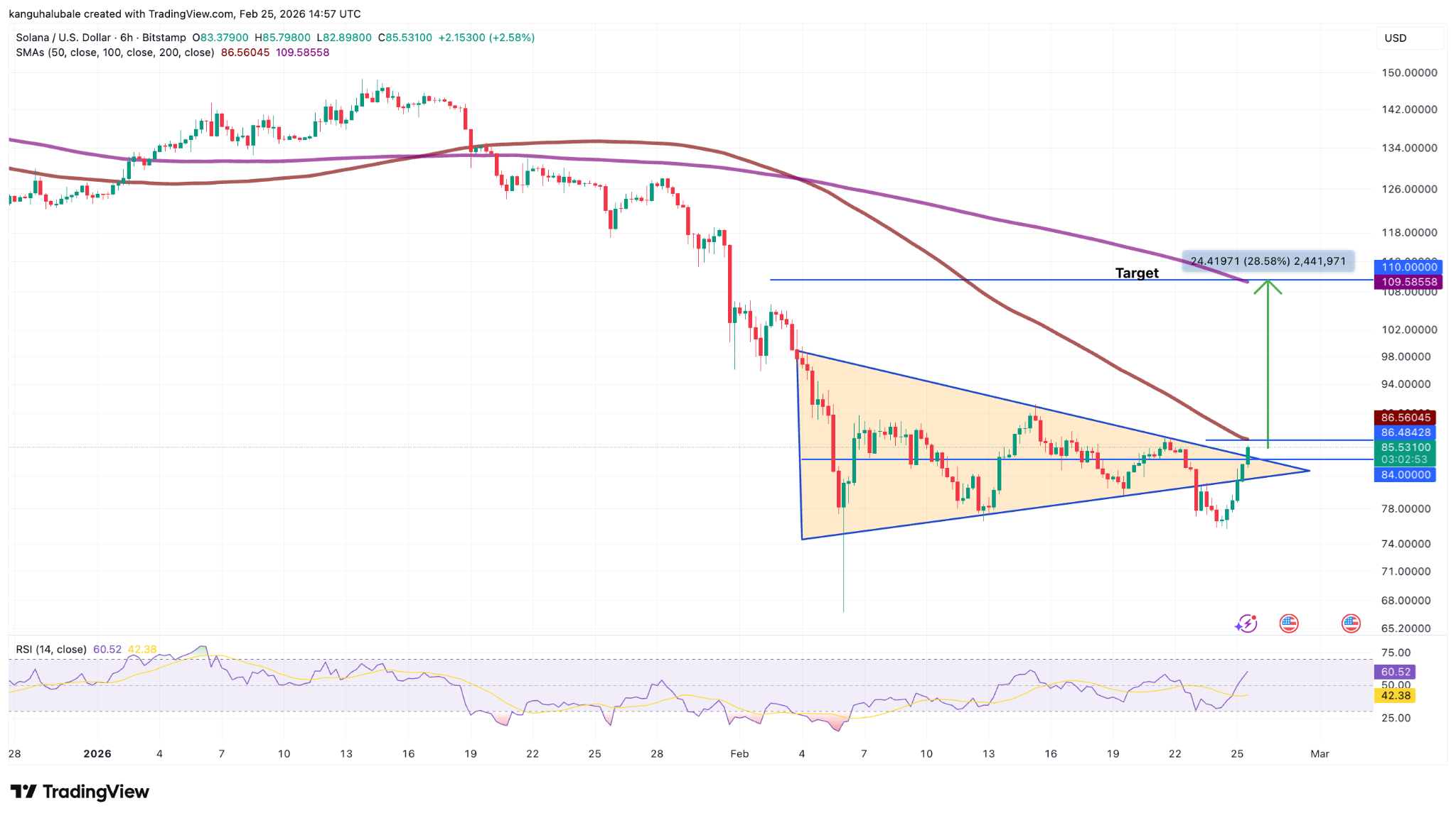 يستهدف اختراق المثلث المتماثل لـ Solana سعر 110 دولارًا أمريكيًا.