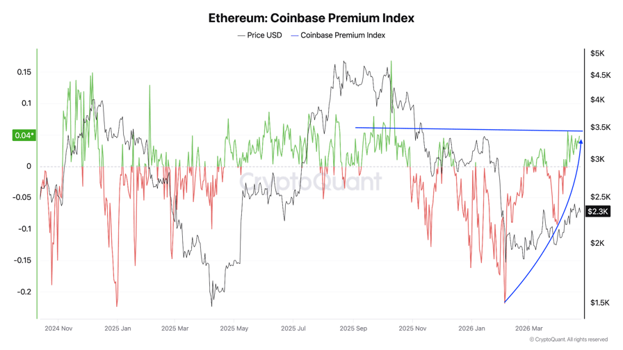 مؤشر Ethereum Coinbase Premium. مصدر: كريبتوكوانت