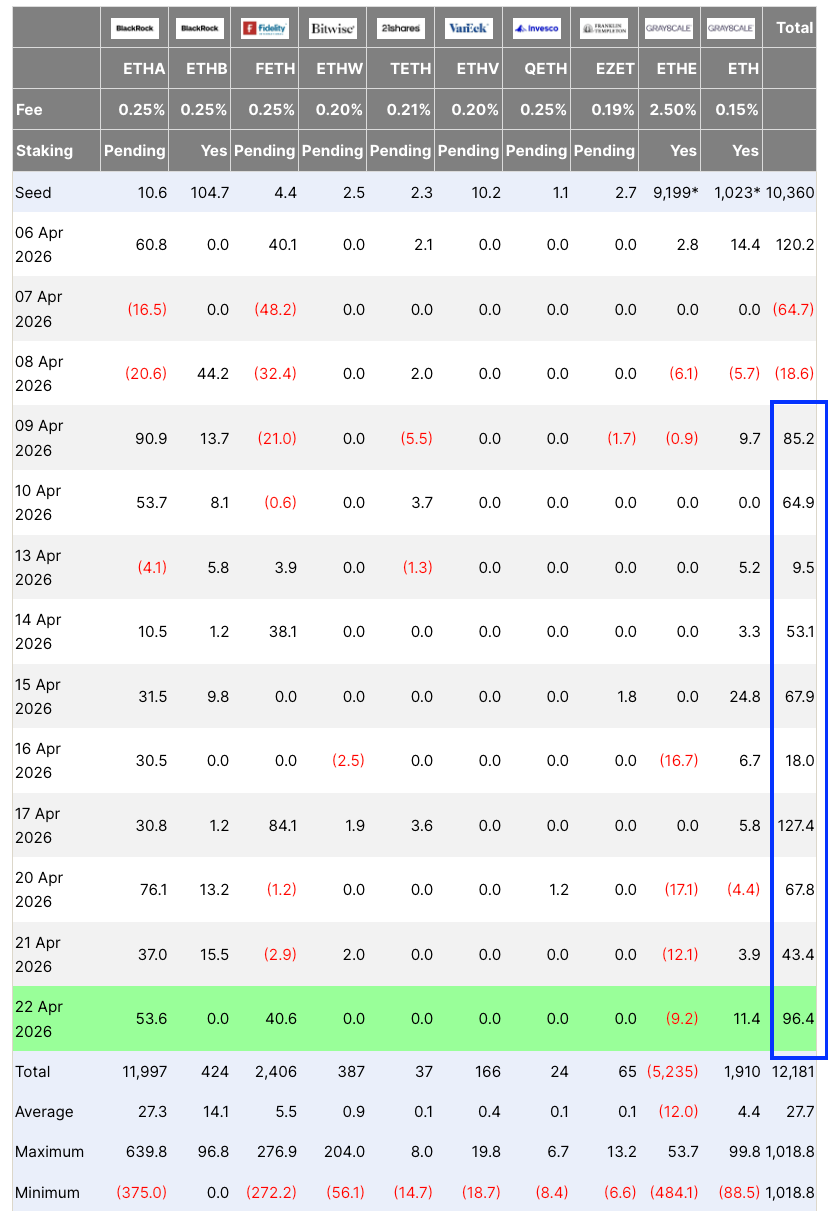 جدول تدفقات صناديق الاستثمار المتداولة Ethereum. المصدر: سوسو فاليو