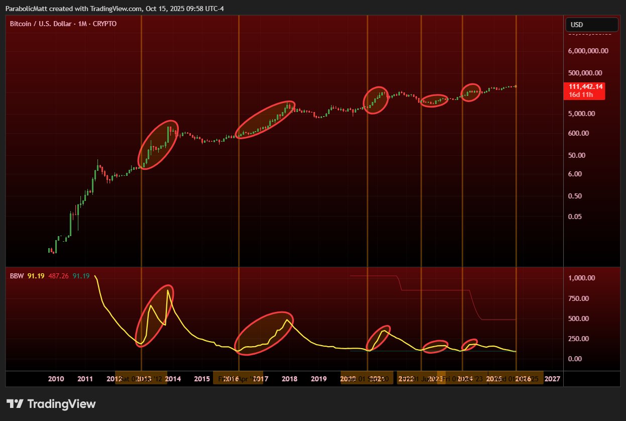 وكتب على موقع X: “لقد وصلت خطوط بولينجر الشهرية إلى أقصى المستويات في تاريخ بيتكوين بأكمله”.