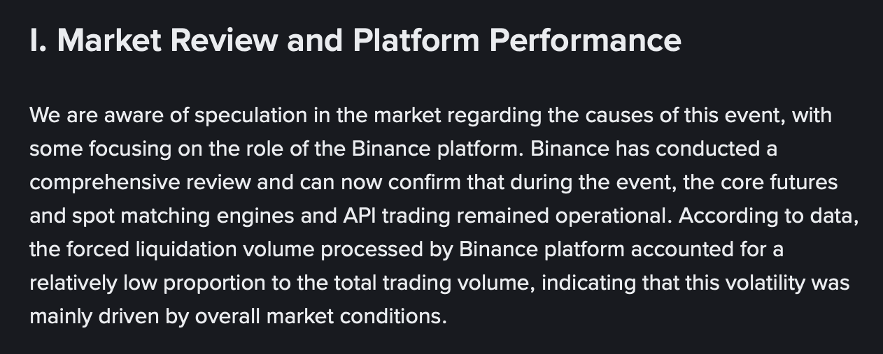 كما أشارت أيضًا إلى أن التصفية القسرية على منصتها لا تشكل سوى حصة صغيرة من إجمالي نشاط السوق، مما يشير إلى أن التقلبات كانت مدفوعة في المقام الأول بظروف السوق الأوسع وليس بسبب خلل داخلي.