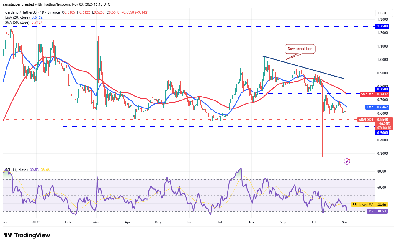 سيحاول المضاربون على الهبوط إغراق زوج ADA/USDT إلى مستوى الدعم الحاسم عند 0.50 دولار. من المتوقع أن يدافع المشترون بقوة عن مستوى 0.50 دولار، حيث أن الاختراق تحته سيفتح الباب أمام الانخفاض إلى 0.40 دولار.
