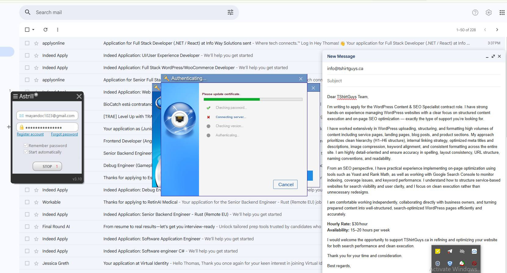 أظهرت لقطة شاشة أخرى تمت مشاركتها بواسطة ZachXBT أن جيري استخدم شبكة Astrill الافتراضية الخاصة للوصول إلى Gmail، حيث قدم العديد من الطلبات لأدوار المطورين ومهندسي البرمجيات الكاملة على الواقع.