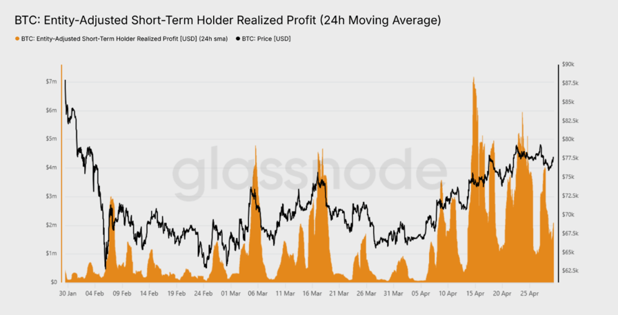 حقق حامل BTC على المدى القصير المعدل حسب الكيان أرباحًا. المصدر: غلاسنود