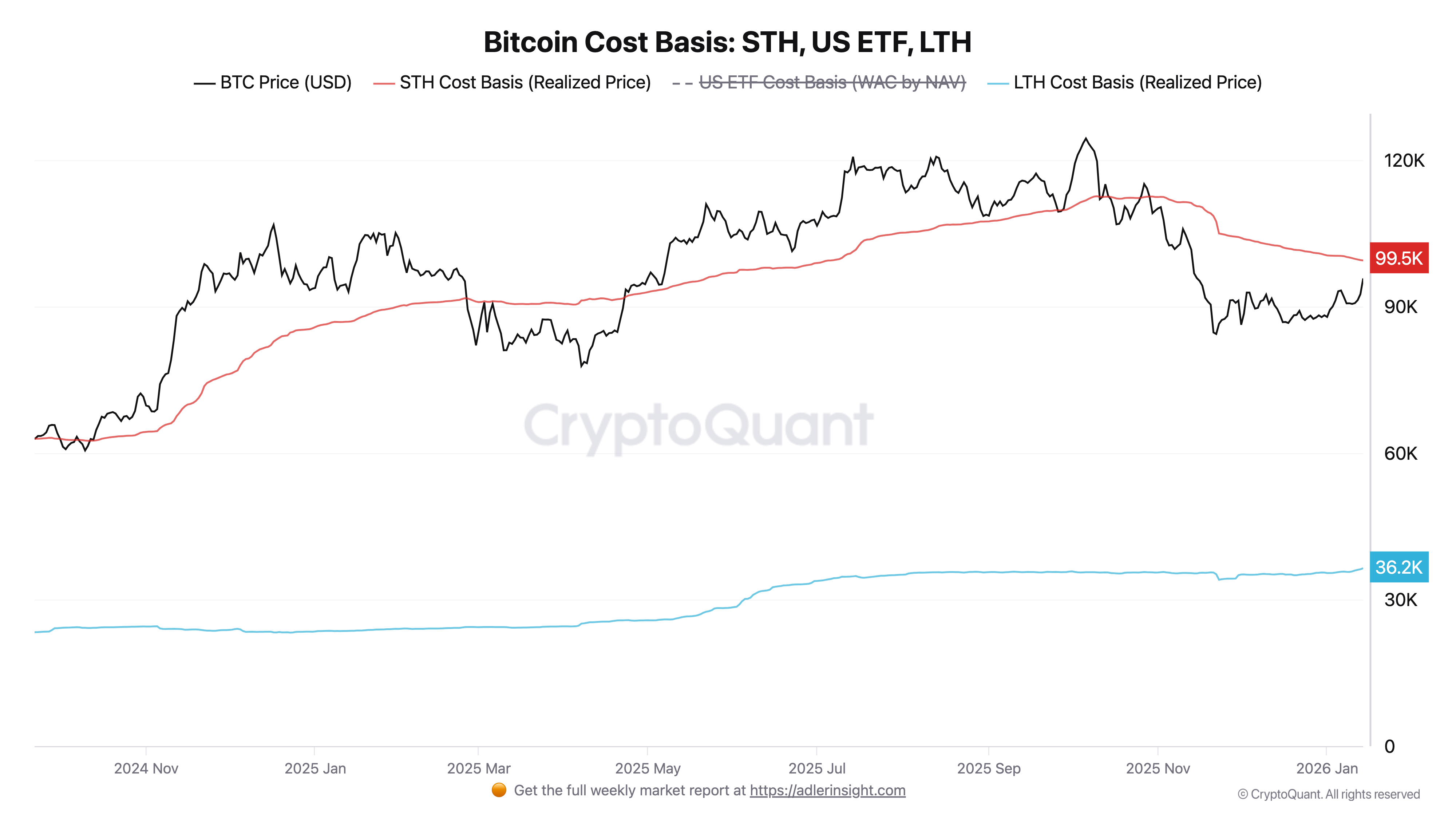 حددت بيانات منفصلة من المساهم في CryptoQuant Axel Adler Jr. أساس التكلفة الإجمالية لمجموعة STH عند 99,600 دولار، مما يعزز هذه المنطقة كنقطة مقاومة مستقبلية محتملة.