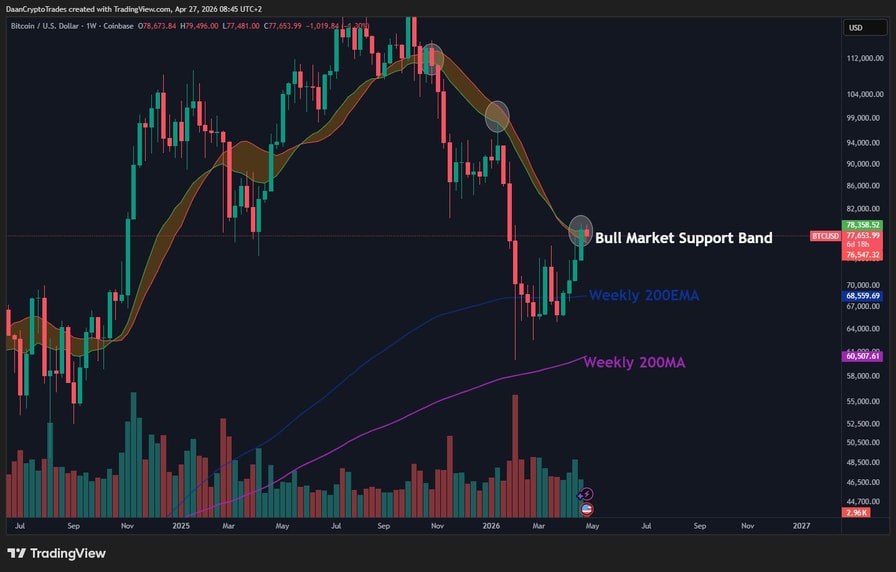 وهكذا استمرت حركة سعر BTC في الابتعاد عن مهاجمة 80,000 دولار بعد إغلاق شمعة أسبوعية فوق مستوى خط اتجاه المقاومة الرئيسي.