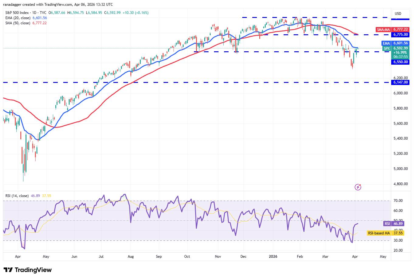 تراجع مؤشر S&P 500 (SPX) مرة أخرى إلى المتوسط المتحرك الأسي لمدة 20 يومًا (6601)، مما يشير إلى عمليات شراء قوية عند مستويات أقل.