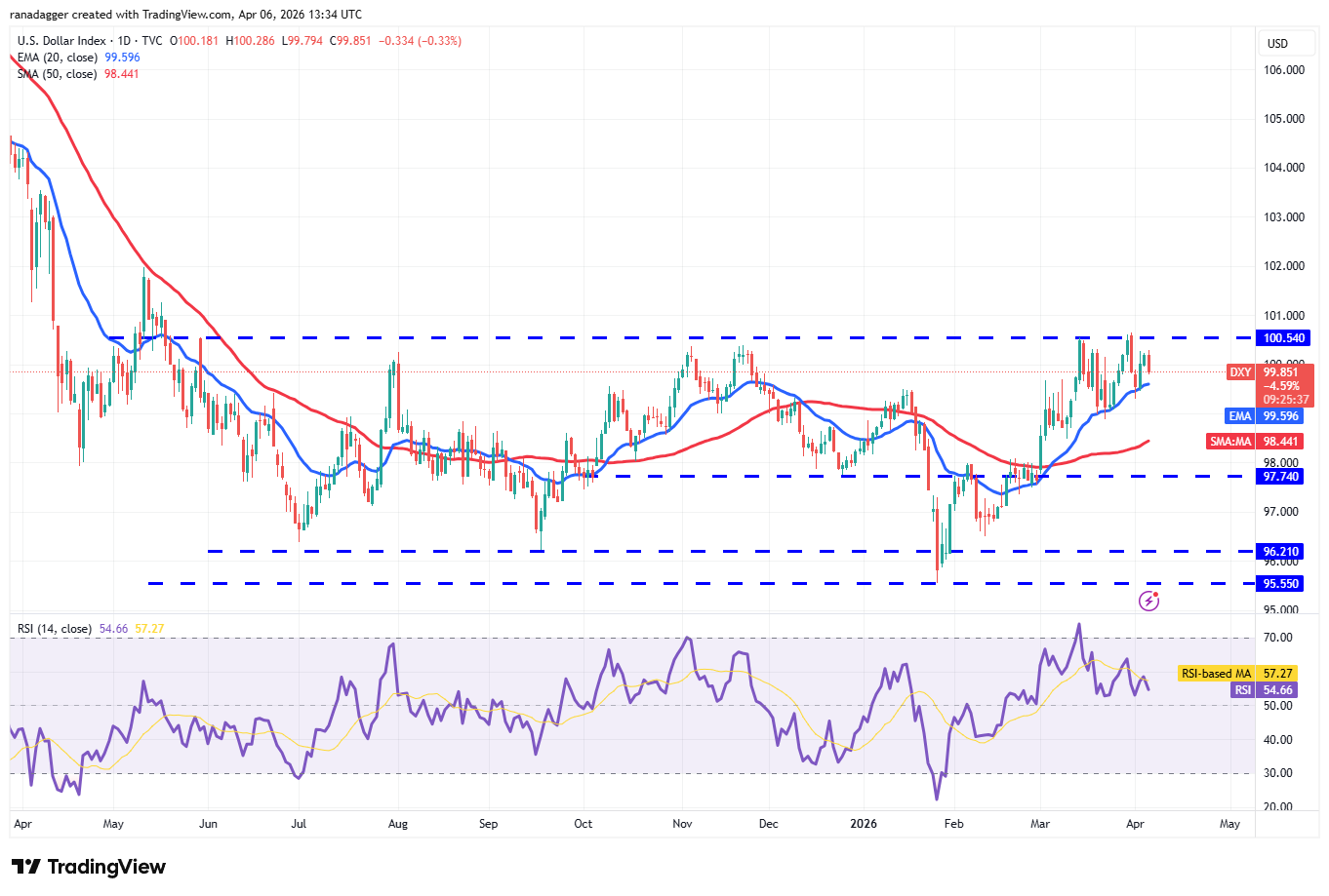 مؤشر الدولار الأمريكي (DXY) عالق بين المتوسط المتحرك الأسي على مدى 20 يومًا (99.59 دولارًا) ومستوى المقاومة العامة 100.54.