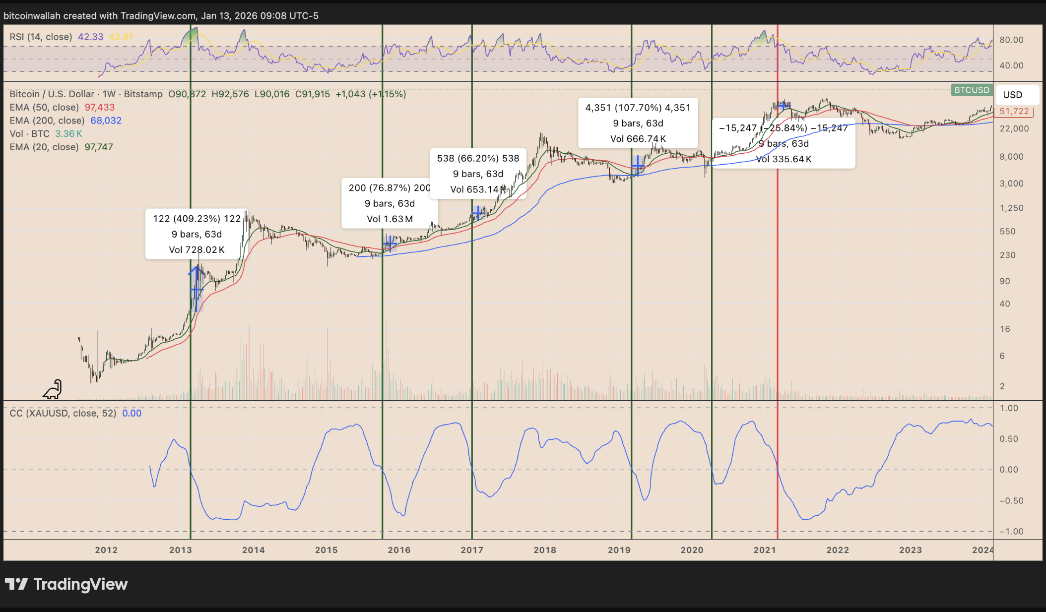 إشارة كلية أخرى تتماشى مع أطروحة الاختراق جاءت من علاقة البيتكوين التاريخية بالذهب.