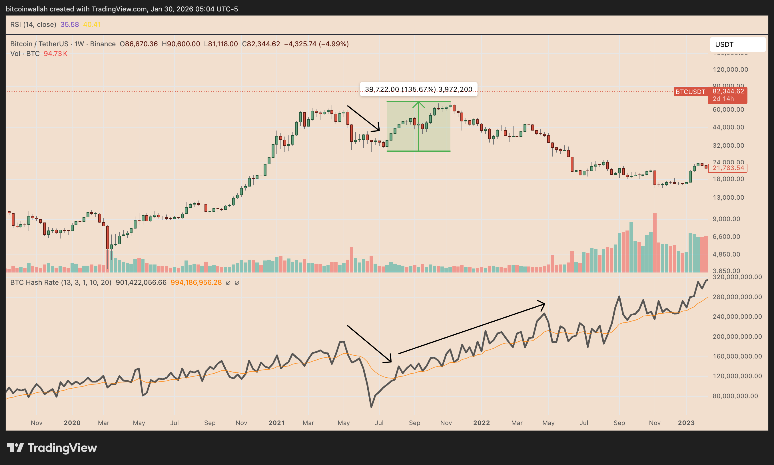 تاريخيًا، تعود عملة البيتكوين إلى قيمة الطاقة الخاصة بها بعد اتجاه هبوطي طويل الأمد.