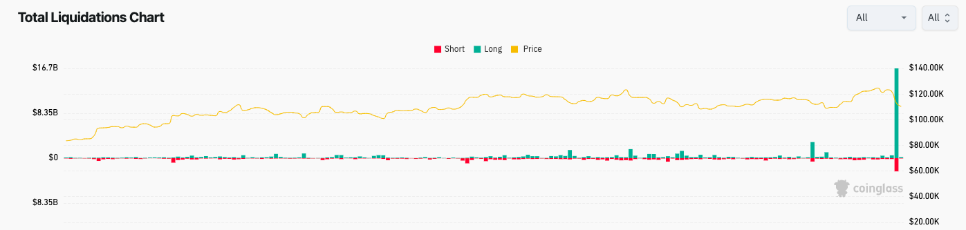تعاني عملة البيتكوين والعملات البديلة من أكبر حدث تصفية في تاريخ العملات المشفرة.