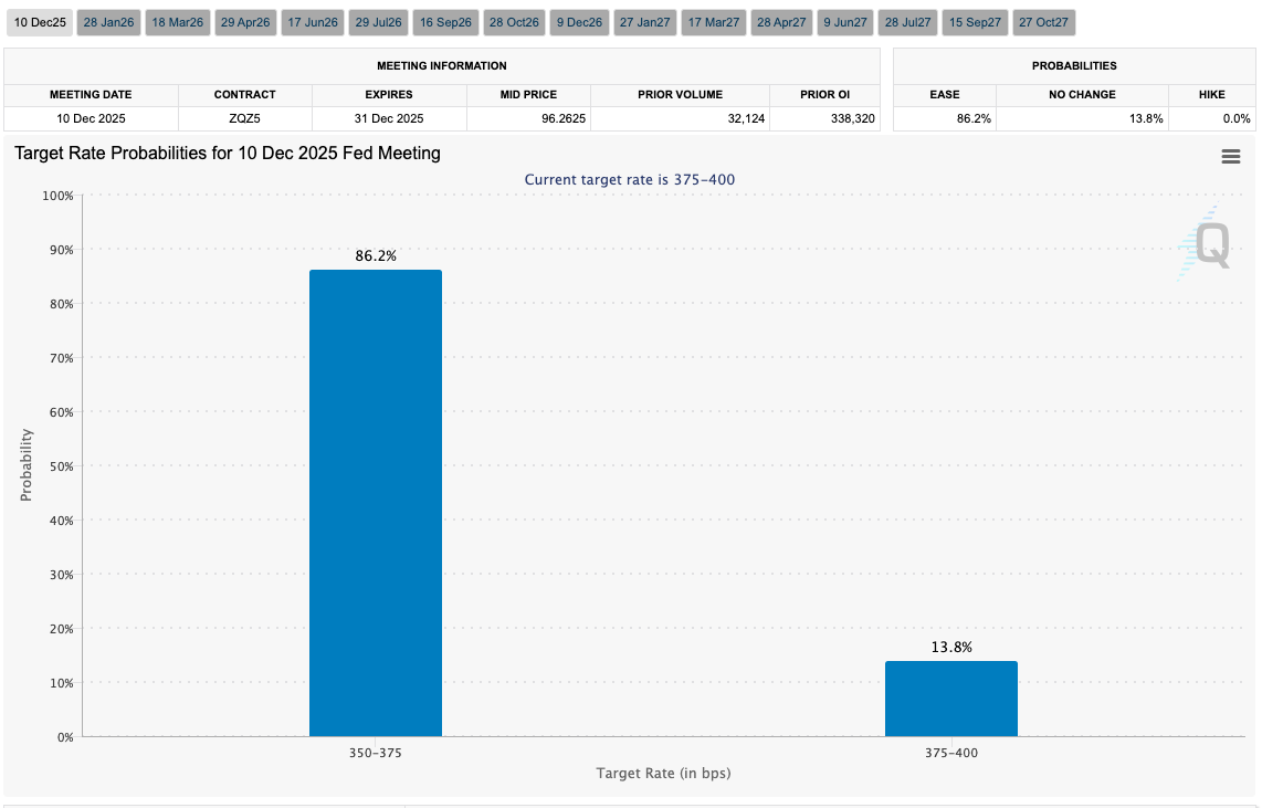 واصلت الأسواق توقع نتيجة خفض بنسبة 0.25% من اجتماع يوم الأربعاء للجنة السوق المفتوحة الفيدرالية (FOMC)، حسبما أكدت البيانات الصادرة عن أداة FedWatch التابعة لمجموعة CME.