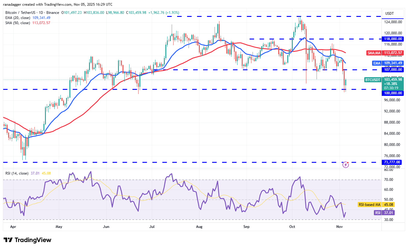 يدافع المشترون بشدة عن مستوى 100000 دولار، ولكن من المتوقع أن يواجه الانتعاش عمليات بيع عند مستوى الانهيار البالغ 107000 دولار ثم عند المتوسط المتحرك الأسي لمدة 20 يومًا (109341 دولارًا). إذا انخفض السعر بشكل حاد من المقاومة العلوية، فإن خطر الاختراق إلى ما دون 100000 دولار يزداد. إذا حدث ذلك، فقد ينخفض سعر زوج البيتكوين/الدولار الأمريكي إلى 87800 دولار.