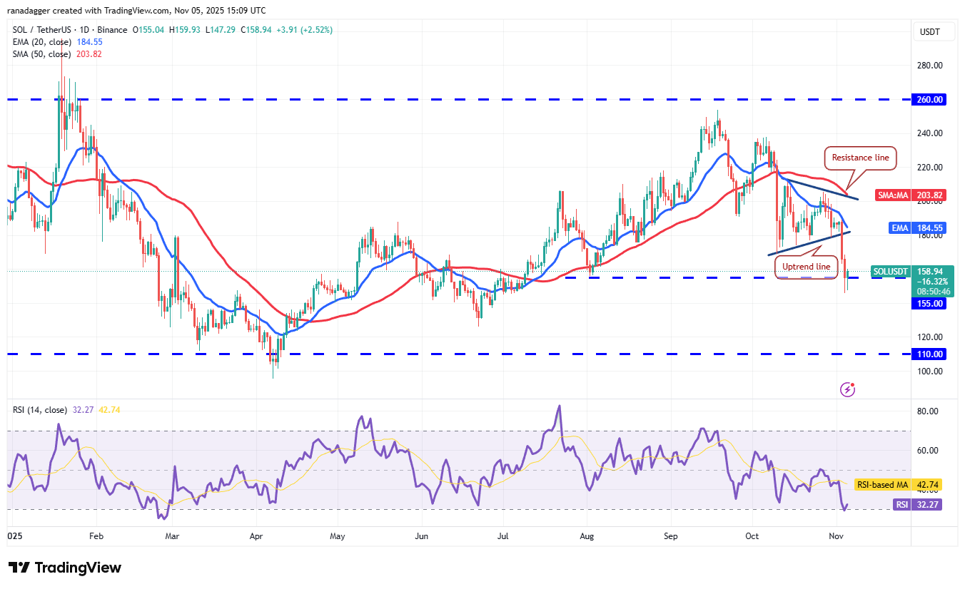 انخفض Solana (SOL) إلى ما دون مستوى 155 دولارًا يوم الثلاثاء، لكن المشترين يحاولون استعادة المستوى يوم الأربعاء.