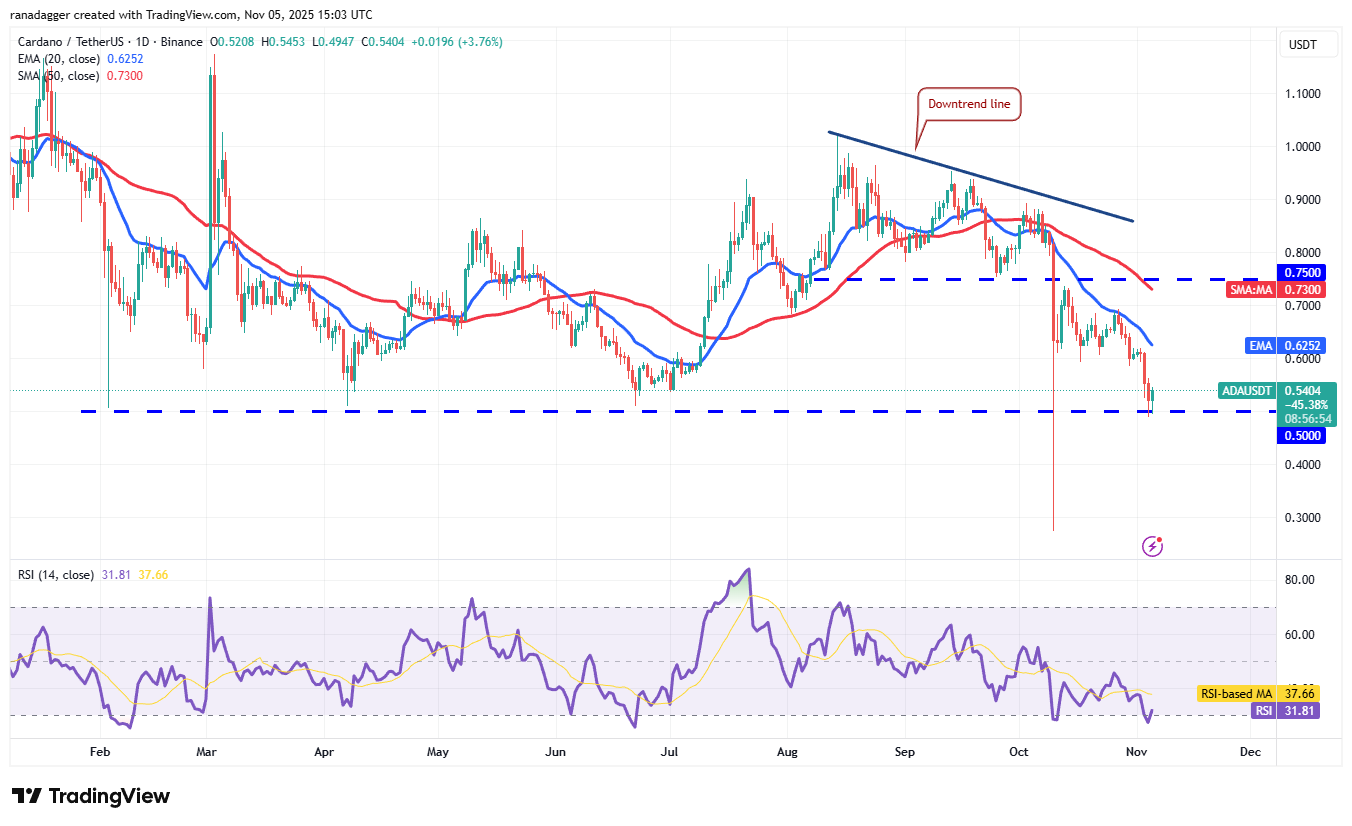 واصل Cardano (ADA) انخفاضه ووصل إلى مستوى الدعم القوي عند 0.50 دولار، حيث من المتوقع أن يقوم المشترون بدفاع قوي.