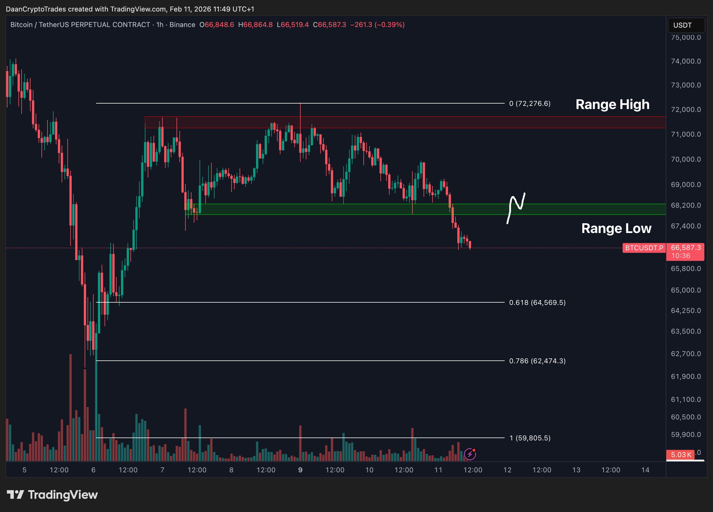جلبت Daan Crypto Trades مستويات تصحيح فيبوناتشي عند 64,569 دولارًا أمريكيًا و62,474 دولارًا أمريكيًا و59,805 دولارًا أمريكيًا بينما تتطلع إلى احتمال حدوث تصحيحات أعمق.