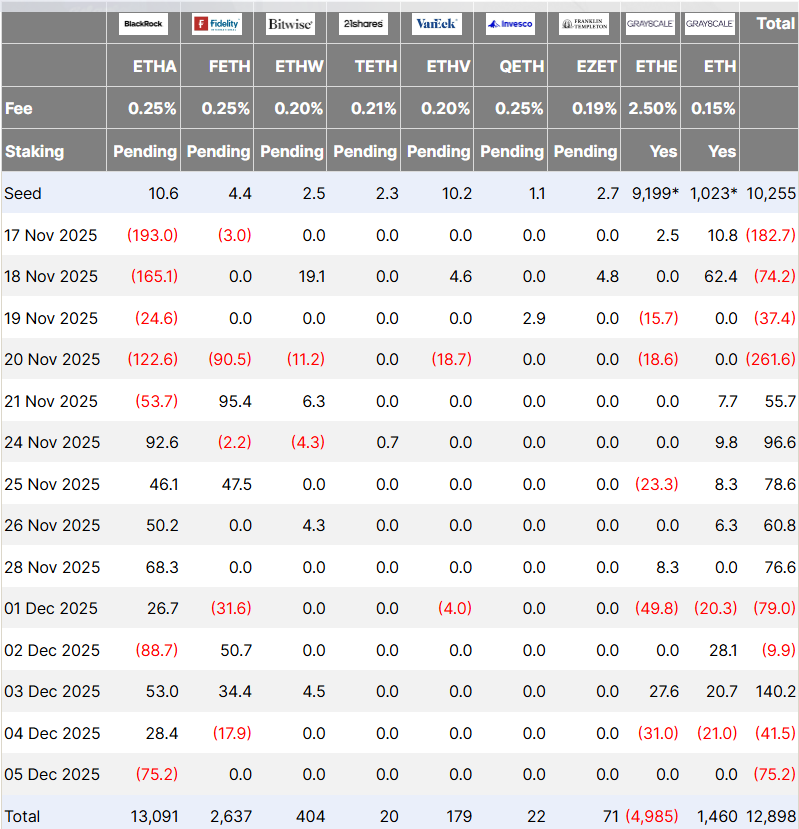 سجلت صناديق الاستثمار المتداولة للإيثريوم 75.2 مليون دولار من صافي التدفقات الخارجية الإيجابية لليوم الثاني على التوالي يوم الجمعة، بعد 1.4 مليار دولار من التدفقات الخارجة الشهرية في نوفمبر، وفقًا لشركة Farside Investors.