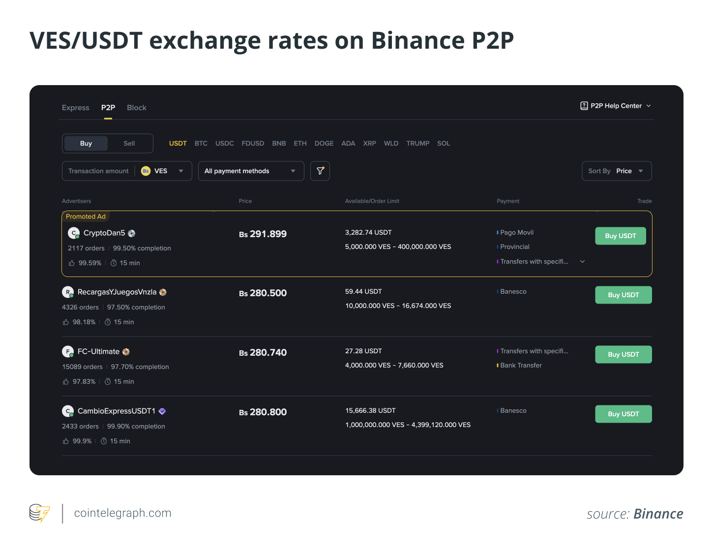 مع التضخم بنسبة 229 ٪ ، يتم تحديد الأسعار اليومية في فنزويلا في USDT “الدولار binance” ، عادة بمعدلات P2P الحية.