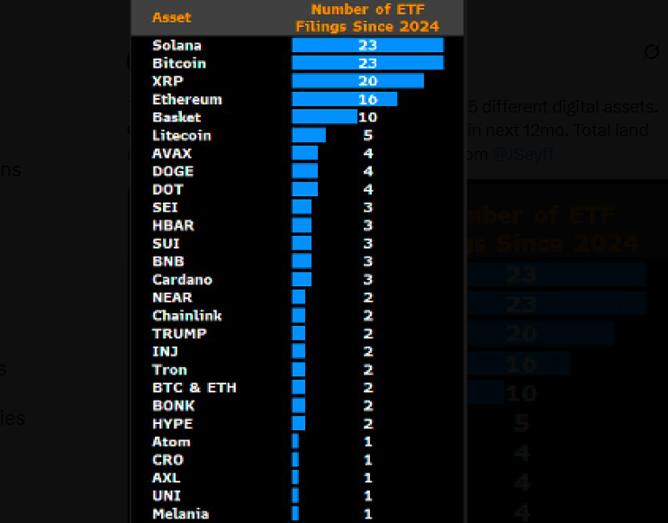 يمكن إطلاق حوالي 200 منتج من المنتجات المتداولة في البورصة (ETPs) القائمة على العملات المشفرة في السوق في العام المقبل، مع انتظار 155 منها الموافقة اعتبارًا من 22 أكتوبر، وفقًا لما ذكره إريك بالتشوناس، كبير محللي صناديق الاستثمار المتداولة في بلومبرج.