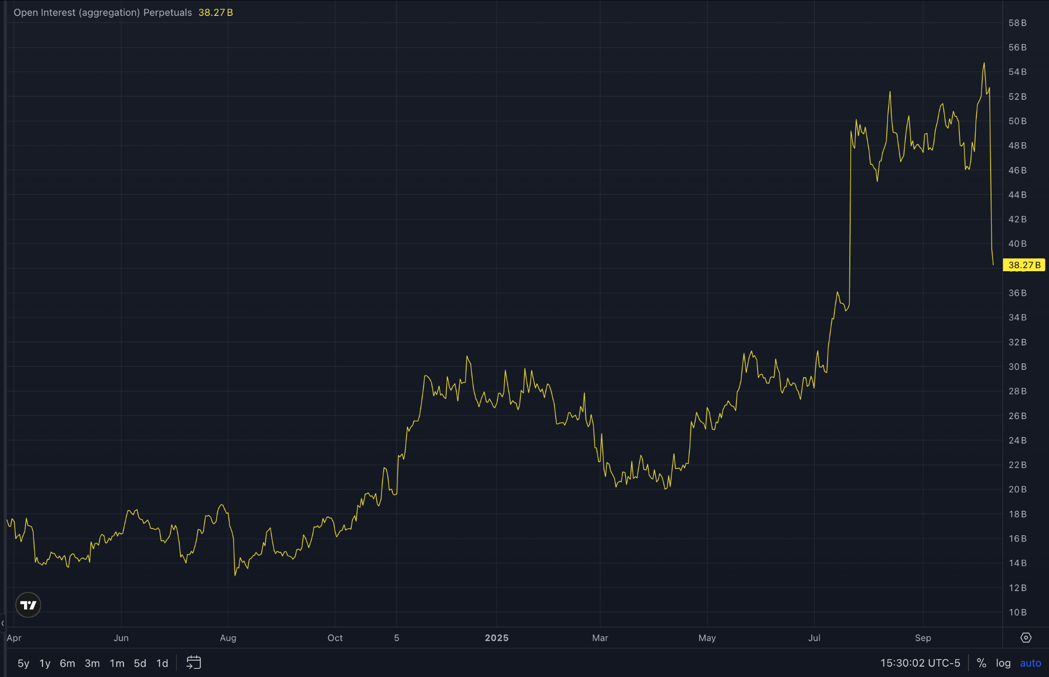 يسلط الانخفاض الحاد في إجمالي الفائدة المفتوحة الضوء على خطورة الـ 20 مليار دولار في عمليات التصفية بالرافعة المالية ويسلط الضوء على إحجام المتداولين عن العودة إلى السوق.